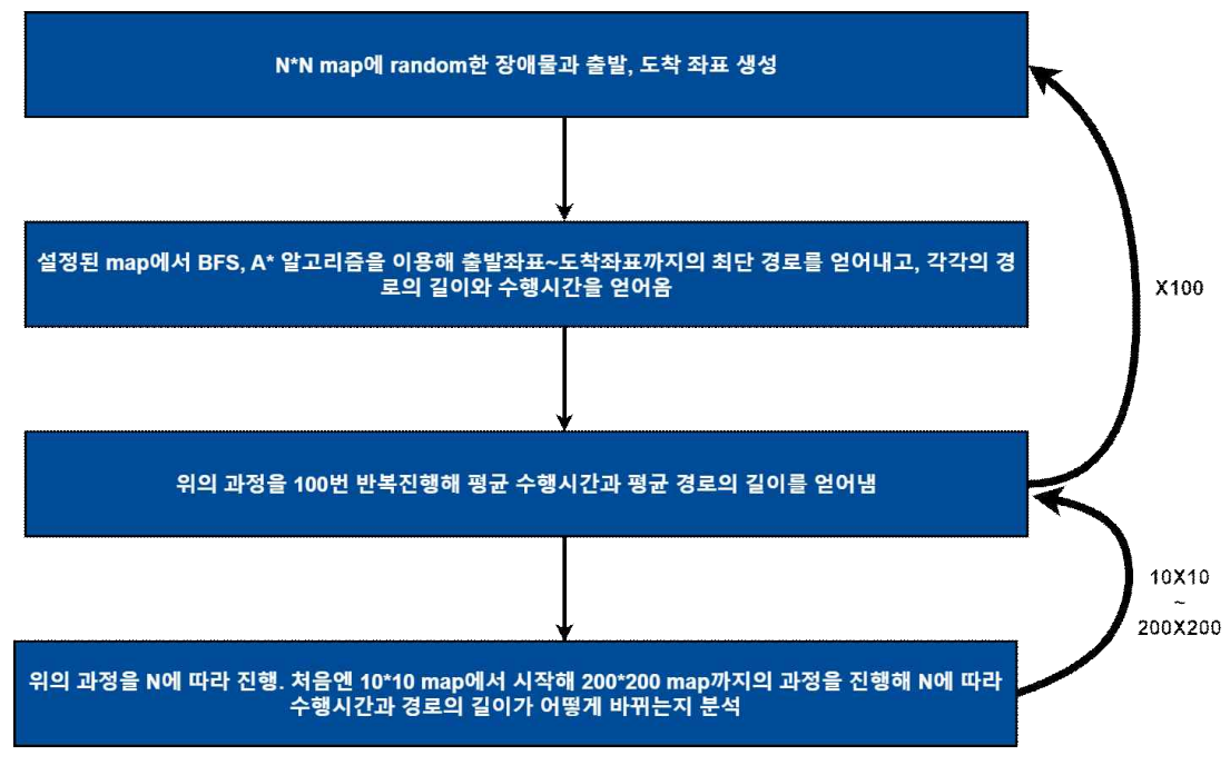 비교할 알고리즘은 A* 알고리즘과 BFS 알고리즘이다. BFS 알고리즘과 달리 A* 알고리즘은 다소 생소할 수 있으나, 실무에서는 A* 알고리즘을 훨씬 많이 사용한다.(애초에 BFS 알고리즘의 진화 버전). 따라서 이번 데이터 분석 프로젝트를 통해서 얼만큼의 성능차이를 보이는지 비교해보고자 한다.