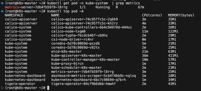 #Calico 삭제 kubectl delete -f https://raw.githubusercontent.com/k8s-1pro/install/main/ground/k8s-1.27/calico-3.26.4/calico.yaml kubectl delete -f https://raw.githubusercontent.com/k8s-1pro/install/main/ground/k8s-1.27/calico-3.26.4/calico-custom.yaml #Calico 재설치 [root@k8s-master ~]# kubectl create -f https://raw.githubusercontent.com/k8s-1pro/install/main/ground/k8s-1.27/calico-3.26.4/calico.yaml [root@k8s-master ~]# kubectl create -f https://raw.githubusercontent.com/k8s-1pro/install/main/ground/k8s-1.27/calico-3.26.4/calico-custom.yaml