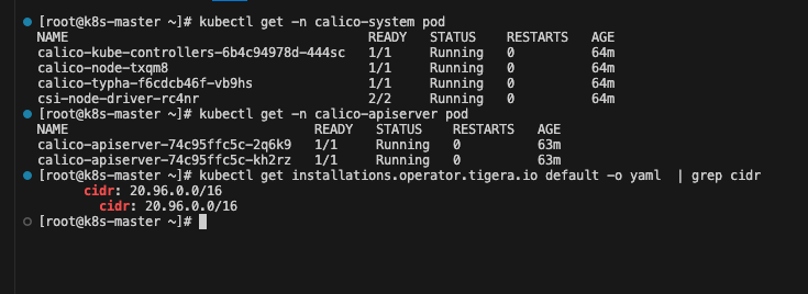 [root@k8s-master ~]# kubectl get installations.operator.tigera.io default -o yaml | grep cidr