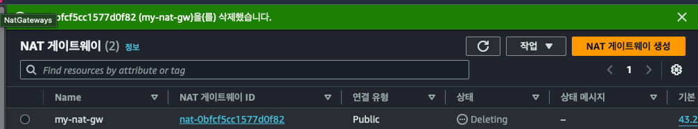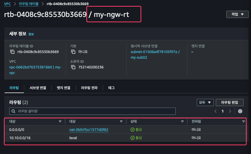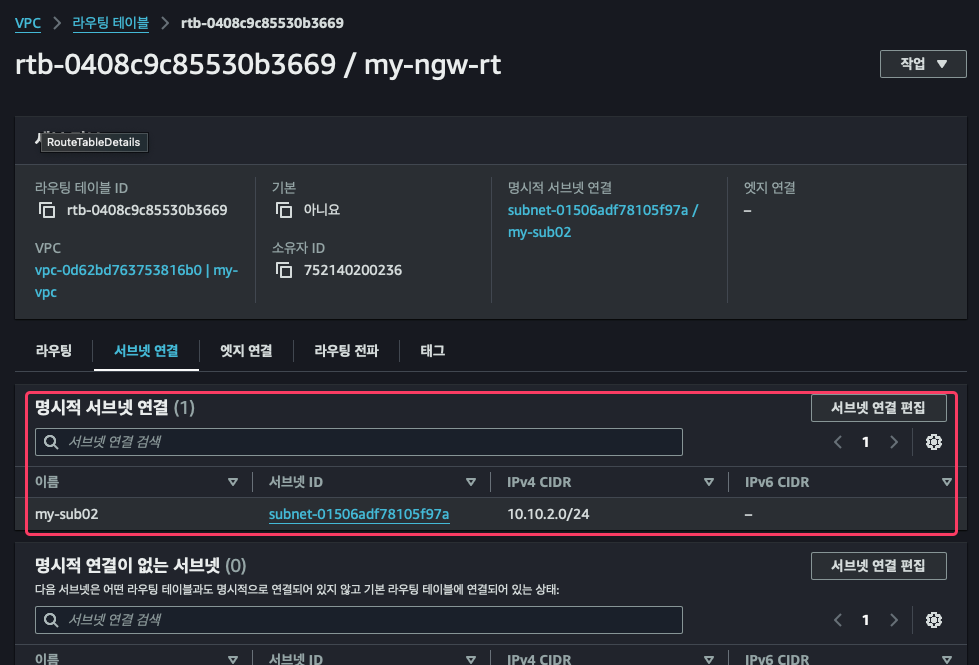 하게 되면 mysub02 서브넷은 프라이빗 서브넷으로 외부에서 접속할수 없게 된다.