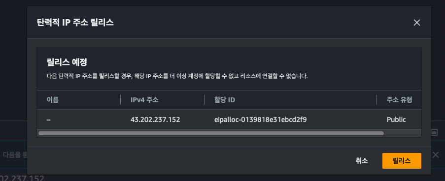 그리고 고정 ip가 필요하므로 Eip 할당해주고 끝