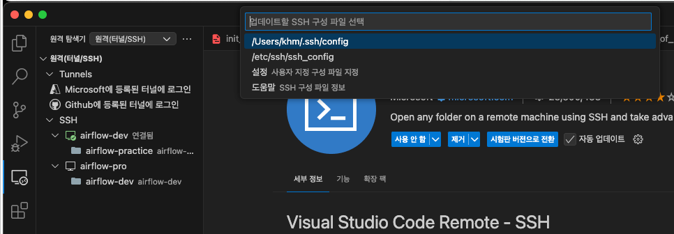 2) 왼쪽 모니터 표시 -> ssh 톱니바퀴 -> /users/khm/.ssh/config