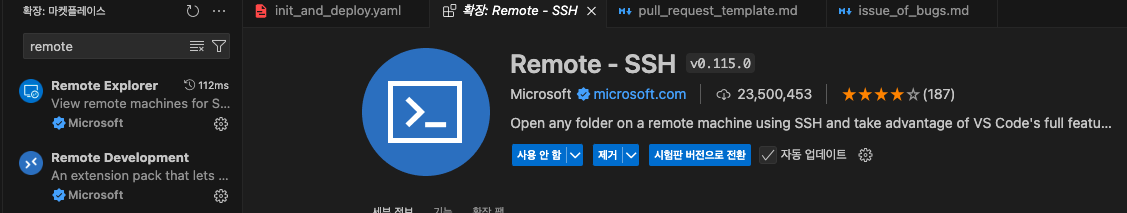 작업을 위해 Visual Studio Code에서 remote-ssh를 사용하여 접속