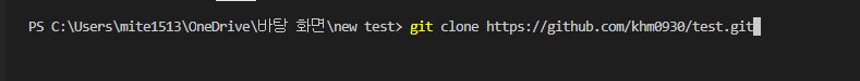 명령어를 입력하게 되면 test 리포지토리가 new test 폴더에 클론 되어 오는 것을 확인 할 수 있습니다.