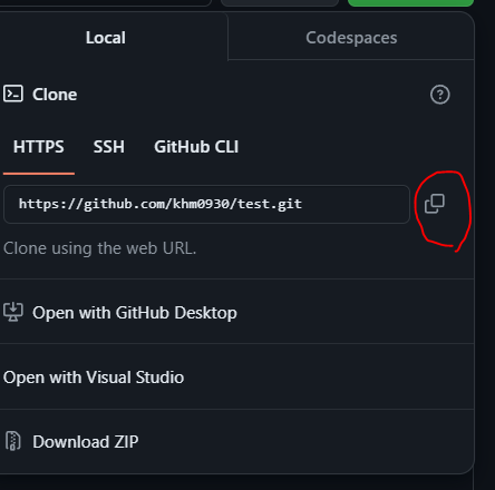 "Code" 버튼을 클릭하고, HTTPS URL을 복사합니다.