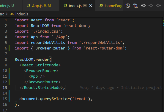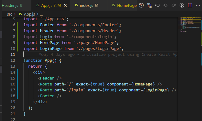 다음 App.js로 가서 이렇게 코드를 적는다.