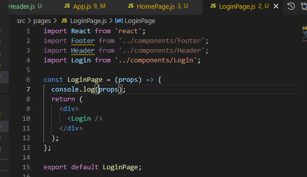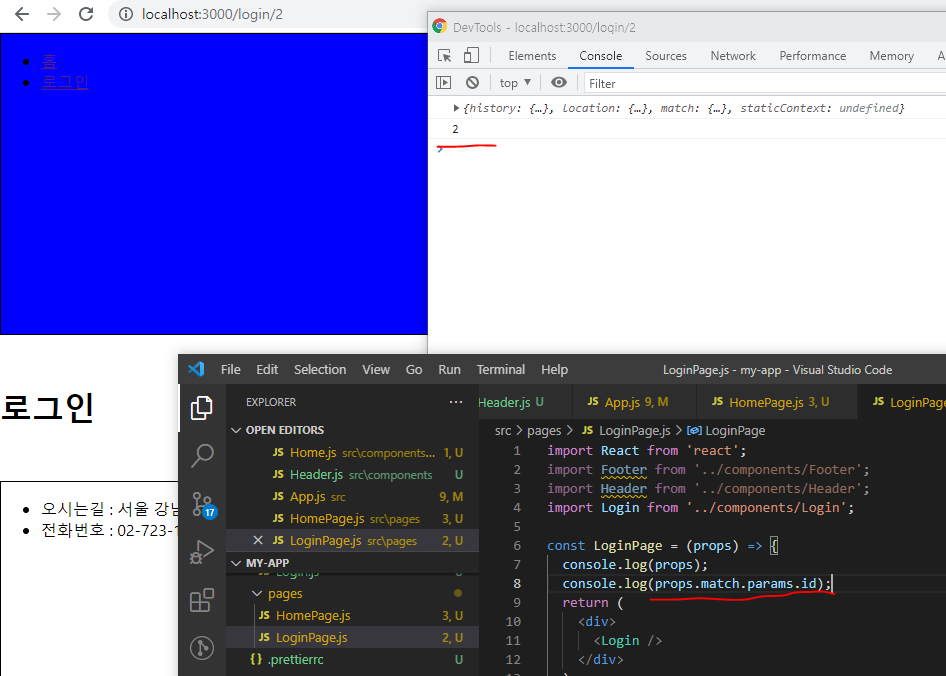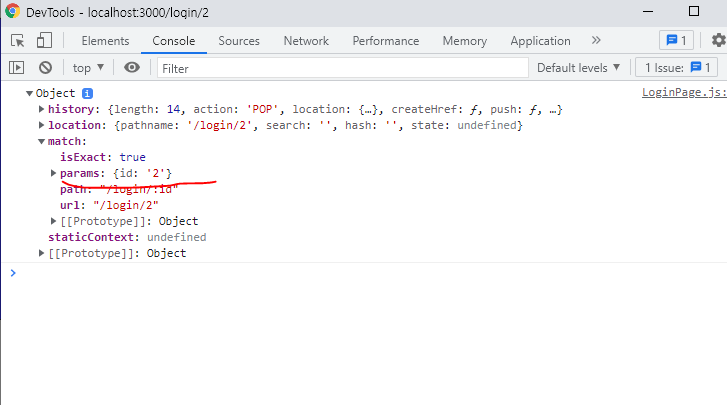 LoginPage로 가서 props로 아까 적은 id값을 받고 콘솔에 찍어보자.