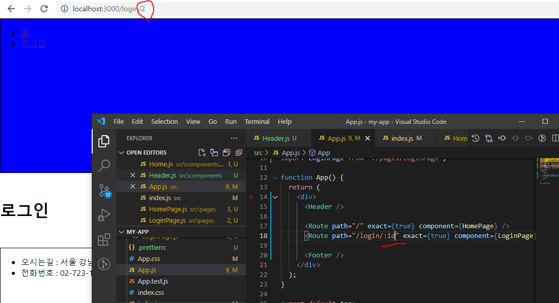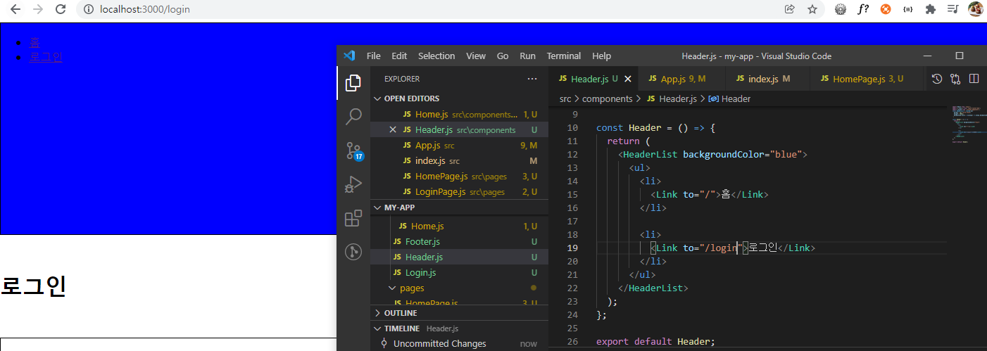 그냥 localhost:3000이면 HomePage를 그리고 /login으로 가면 LoginPage를 그리게 된다.