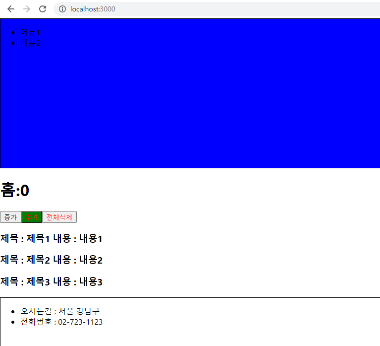 화면이 제대로 나온다. 만약 빈 화면만 출력되면 npm i react-router-dom@5.2.0 이렇게 라우터 돔을 다시 설치해보자.