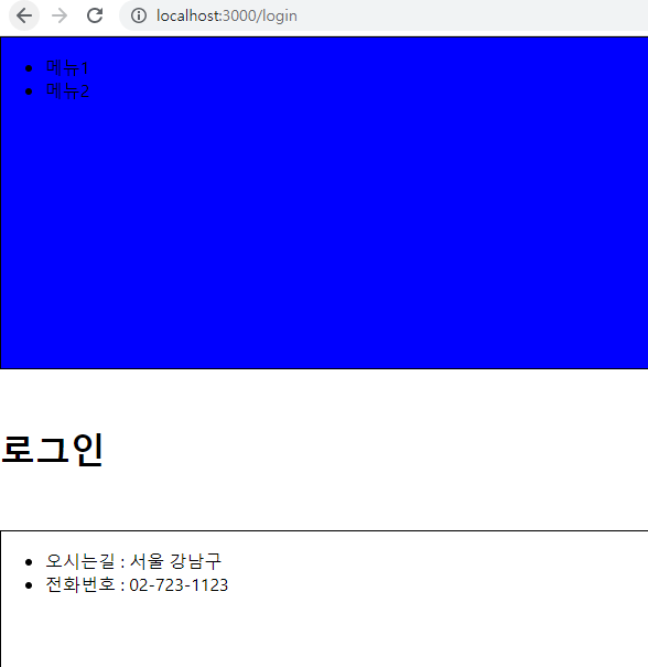 /login을 입력하면 로그인페이지가 return이 되는 것을 볼 수 있다. 이제 위에 헤더에 메뉴를 클릭했을때 이동하도록 해보자.