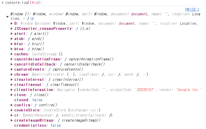브라우저 환경에서 사용할 수 있는 기본적인 메소드들이 보인다.(alert,confirm...)