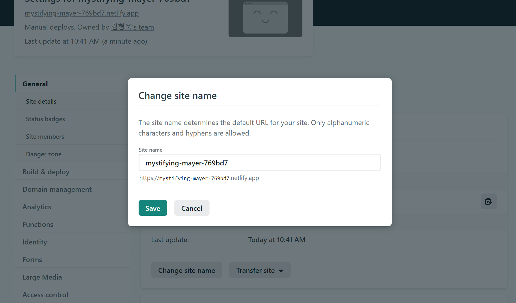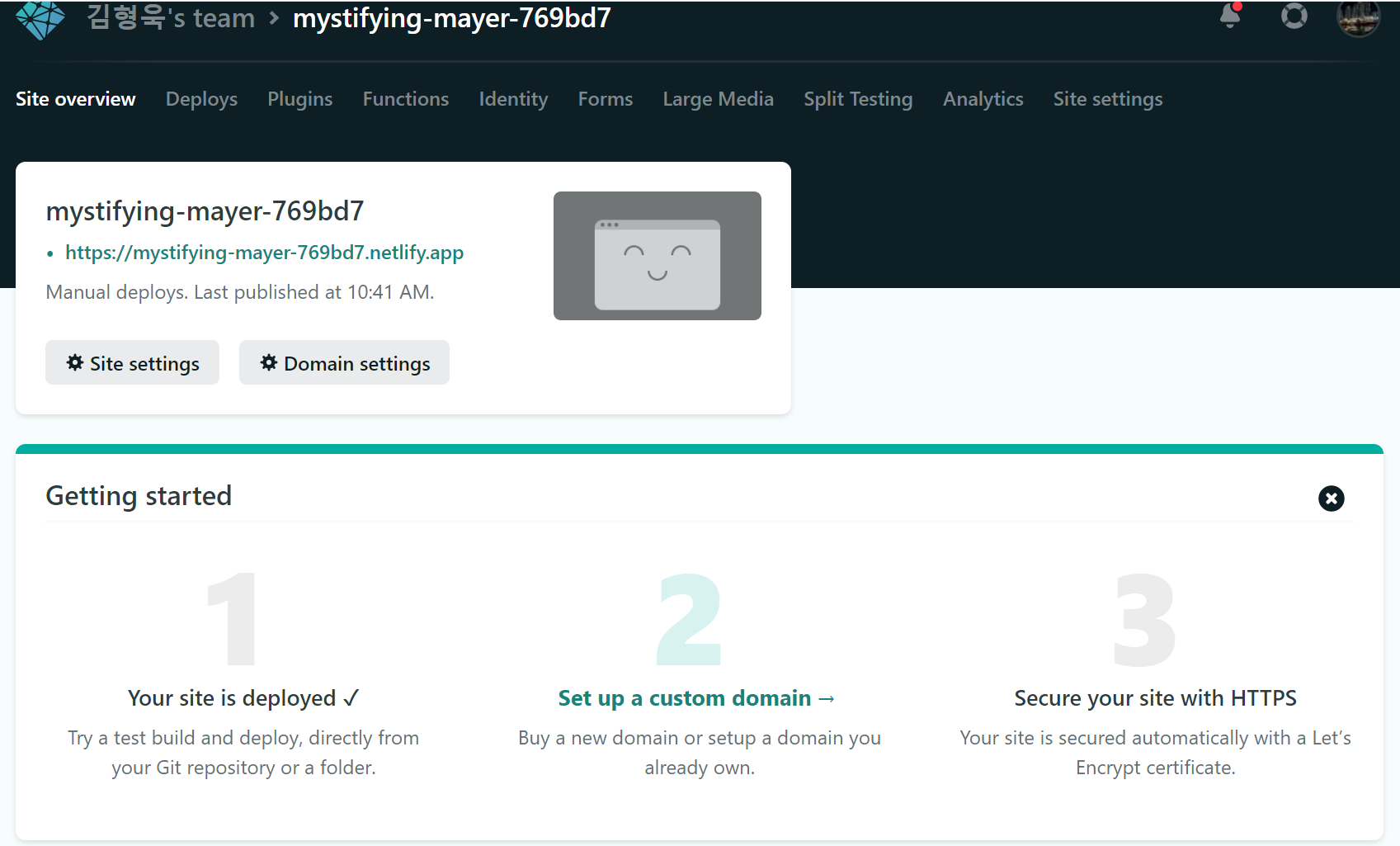 Site settings버튼을 통해 url을 좀더 수정할 수 있는 서비스도 제공중이다.