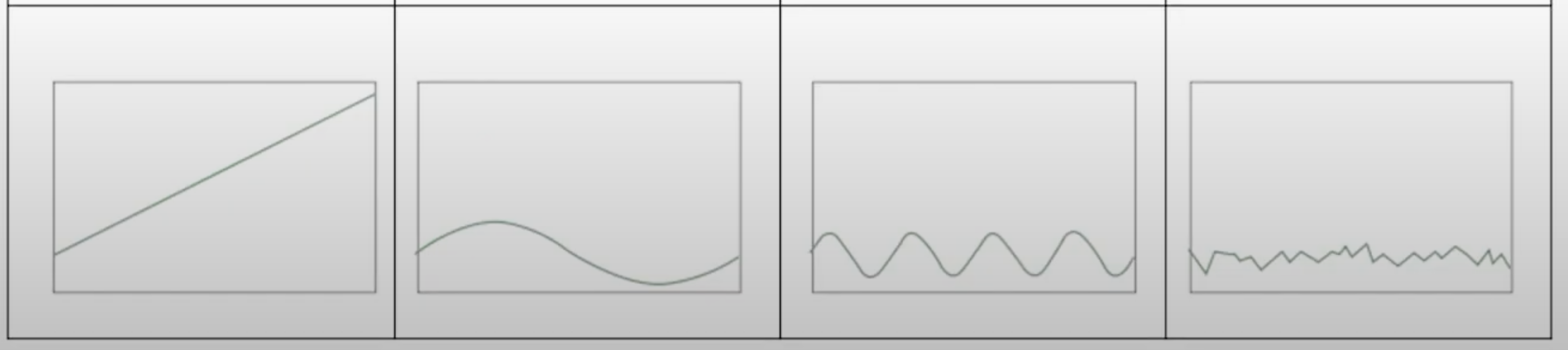 - 주기(C) - 일정하지 않은 주기를 가지며, 경제적, 사회적 요인에 의해 발생하는 장기적인 변화.