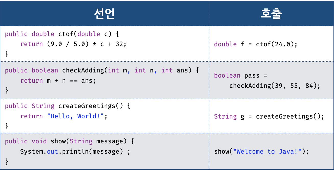 선언 & 호출 예시