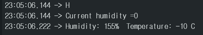 Serial.print(h); // 변수 h(습도)를 출력한다.