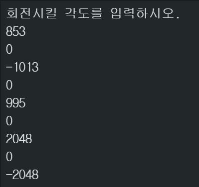 - 스테퍼모터가 반시계방향으로 한 바퀴 돌았다가 시계방향으로 한 바퀴 돈다