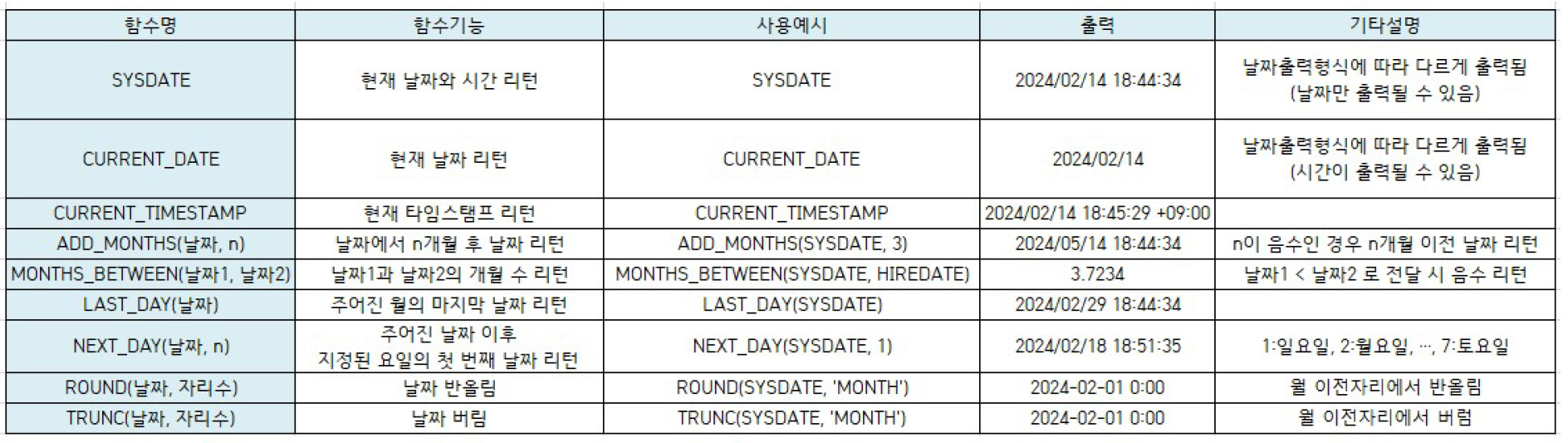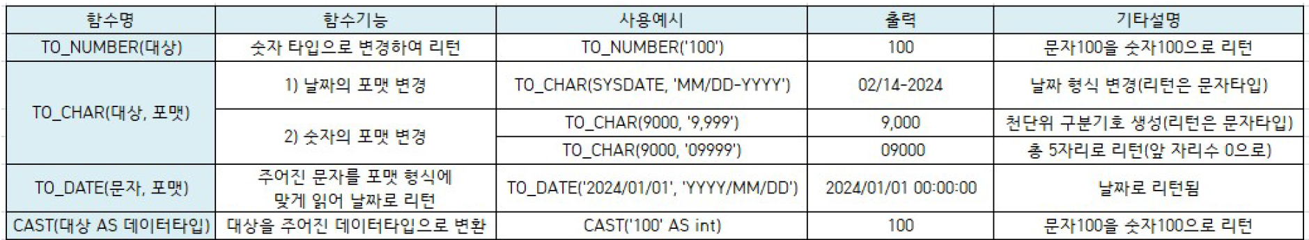 TO_NUMBER, TO_DATE, TO_CHAR -> CONVERT(포맷 전달 시)