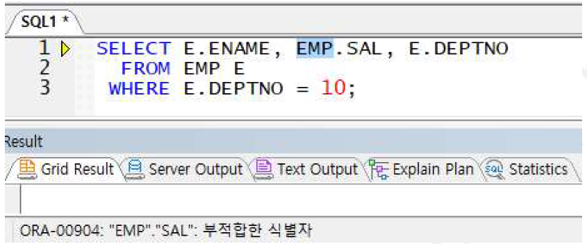 SELECT문보다 늦게 수행되는 ORDER BY절에서만 컬럼 별칭 사용 가능
