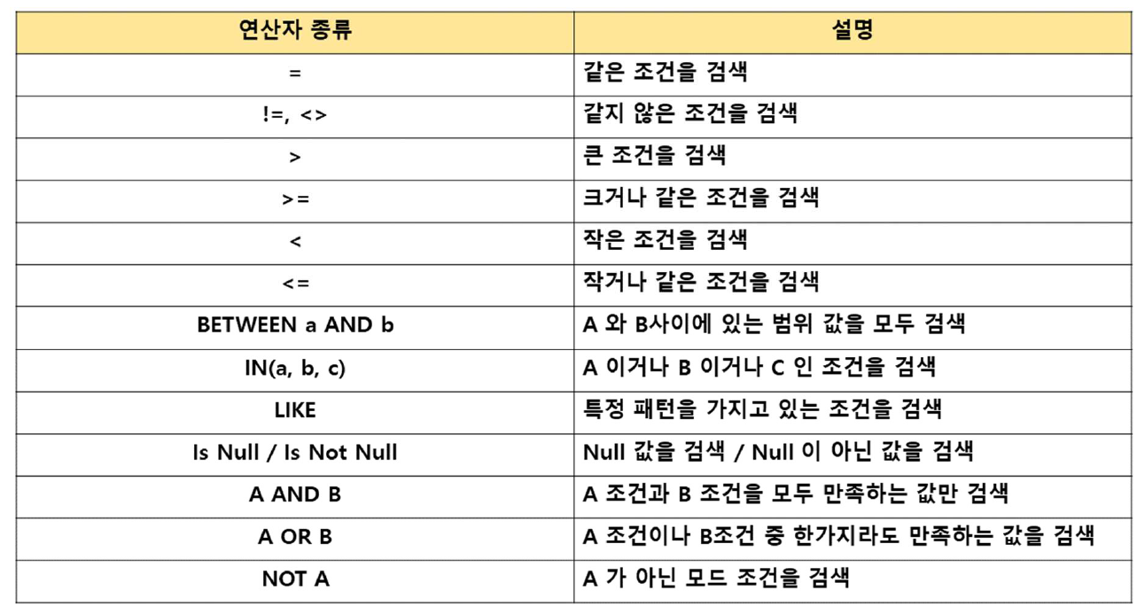 테이블의 데이터 중 원하는 조건에 맞는 데이터만 조회하고 싶을 경우 사용