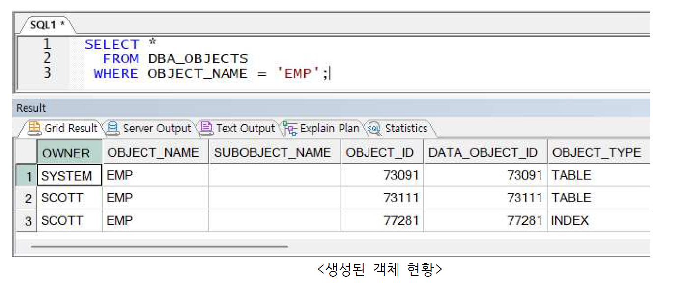 ex) SCOTT 소유의 EMP 테이블 존재, HR 소유의 EMP 테이블 생성 가능