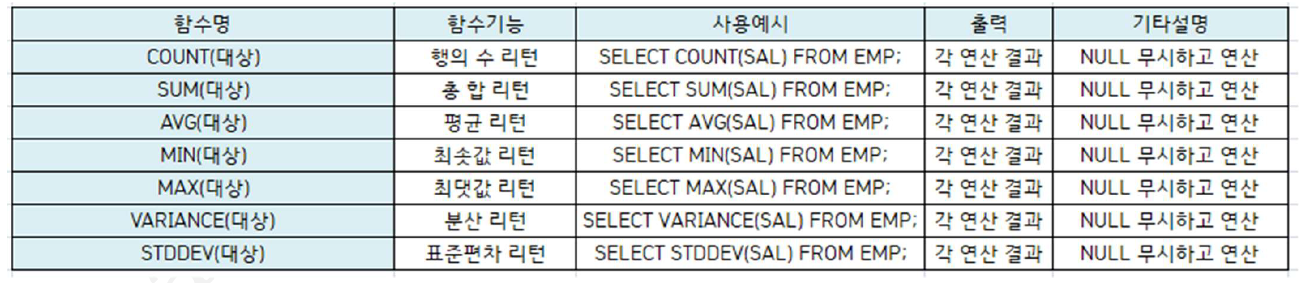 (GROUPBY 와 HAVING은 서로 바꿀 수 있지만 보통 사용하지 않음)