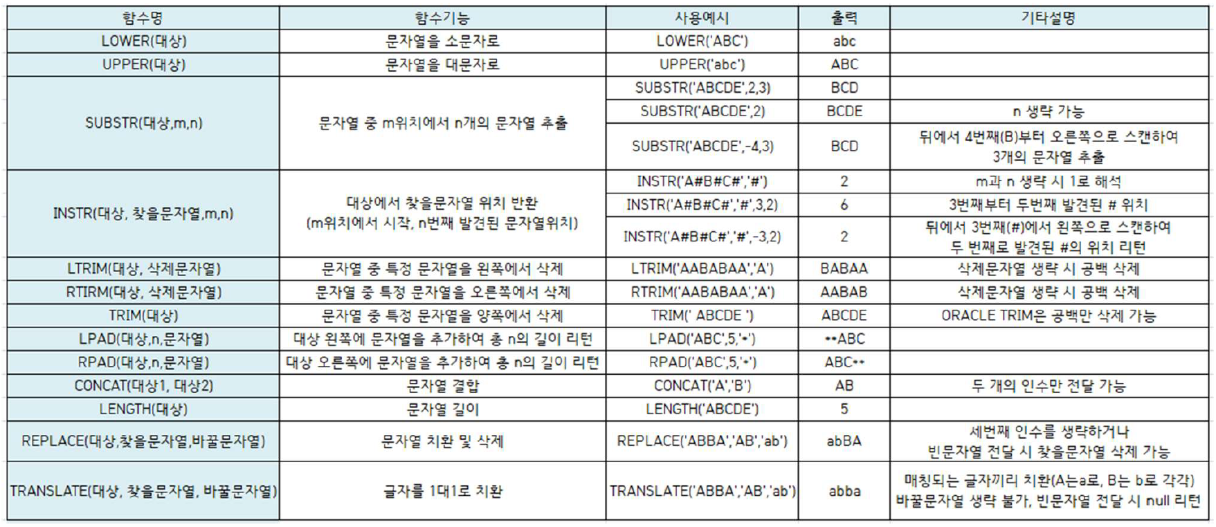 ORACLE은 문자 상수의 경우 대소문자를 구분