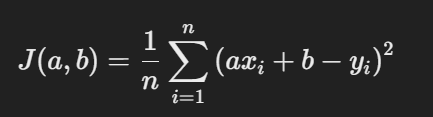 이때에 기울기와 절편을 조정해 최솟값에 도달하는 것이 목표이다