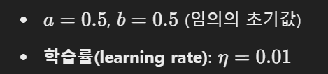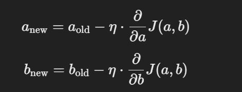 각 반복에서 기울기와 절편은 손실 함수의 편미분 값을 사용해 업데이트된다