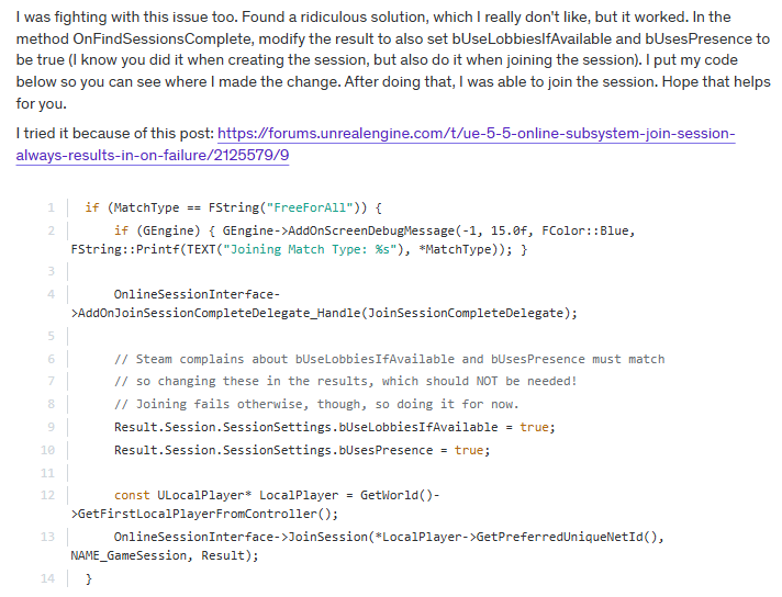 또한 해당 글의 작성자가 참고한 UE의 Dev Forum 의 글을 확인해보면 추가적으로 참여할 세션을 찾을때 설정해주는 부분에서 QuerySettings 의 Key 값으로 사용하는 SEARCH_PRESENCE