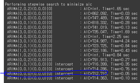 - True : 순차적으로 최적의 모델을 선택하며 AIC or BIC기준으로 모델을 최적화함