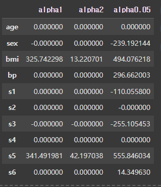 coef = pd.DataFrame(data = model.coef_, index = x_train.columns, columns = ['alpha1'])