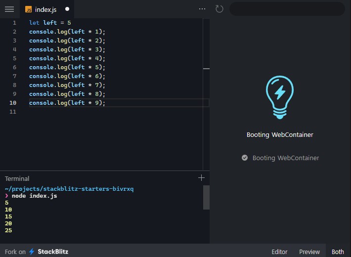 appleCount 변수에는 숫자 2, bananaCount 변수에는 숫자 3이 할당되어 있으므로, 두 값을 더하면 5