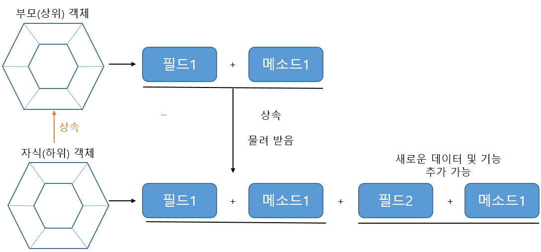 객체 지향 프로그래밍에서는 부모 역할의 상위 객체와 자식 역할의 하위 객체가 있다. 부모 객체는 자기가 가지고 있는 필드와 메소드를 자식 객체에게 물려주어 자식 객체가 사용할 수 있도록 한다. 이것이 상속(Inheritance)이다. 상속을 하는 이유는 다음과 같다.