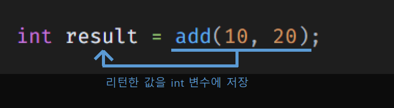 메소드의 리턴값은 다음과 같이 호출한 곳에서 변수로 대입 받아 사용한다.
