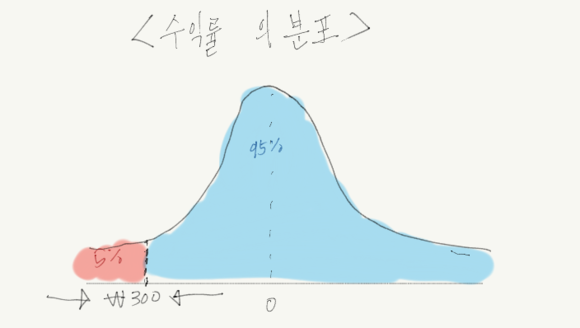 예를 들어 95%의 신뢰수준 하에서 1년 동안의 VaR는 300만원이라고 한다면,