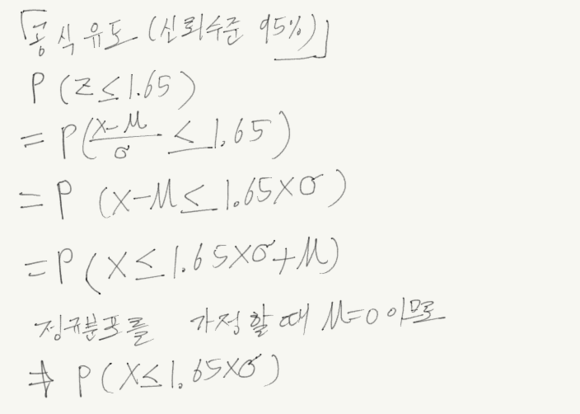 한달 동안의 VaR을 구하기 위해선 기대수익률/12, σ/√(12)