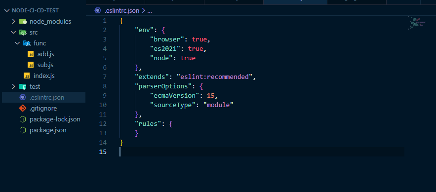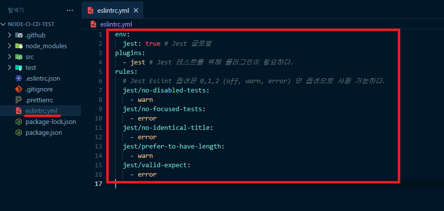 eslintrc.yml파일을 생성하여 셋팅 코드 작성env:
