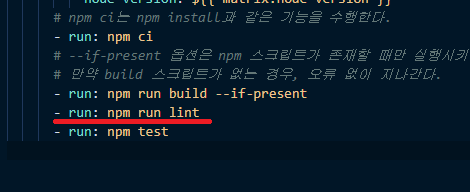 ci.yml에 아래 명령어를 steps에 추가- run: npm run lint