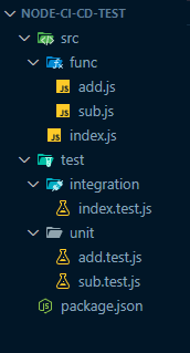 여기서 integration 폴더에는 통합 테스트를 진행하는 테스트 코드 파일을,