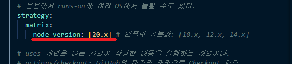 node-version: [14.x] # 템플릿 기본값: [10.x, 12.x, 14.x]