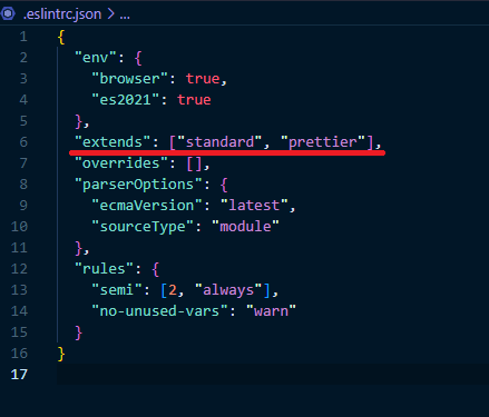 .eslintrc.json파일이 생성되면 아래처럼 작성되어있다.