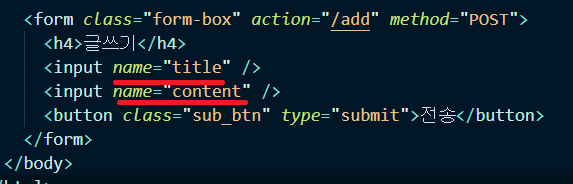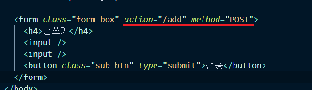 server.js에 /write로 들어오면 해당 html이 보일 수 있도록 GET처리app.get("/write", (요청, 응답) => {