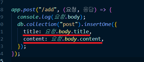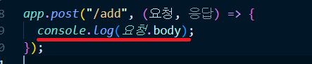 app.post("/add", (요청, 응답) => {