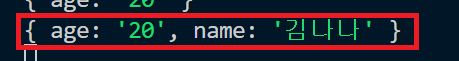 요것두 아까 기입한 { age: '20' }이 잘 나온다!