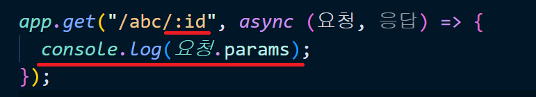 요청.params로 파라미터 값을 콘솔창에 출력해보기