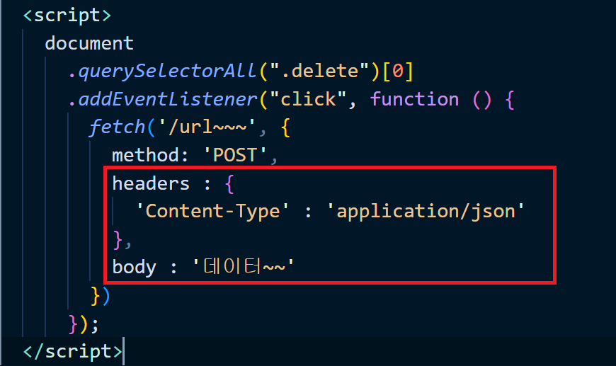 이제 ajax로 서버에 요청을 날리기 위해 fetch()를 사용