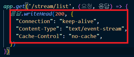 서버코드에 "/stream/list"로 get 요청을 하면 요청을 끊지 말고 유지해보자