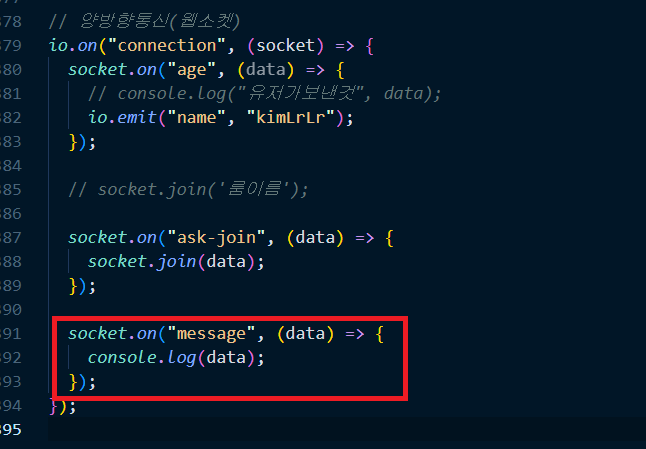 서버는 메세지를 수신하면 룸에 전달해준다.