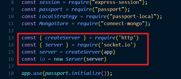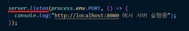 app.listen이라고 되어있던 코드를 server.listen으로 변경해줌