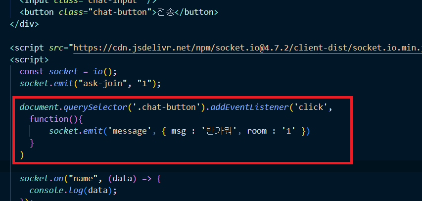 전송 버튼 누르면 서버한테 emit을 보내는 걸로 메세지 전송을 부탁해보자